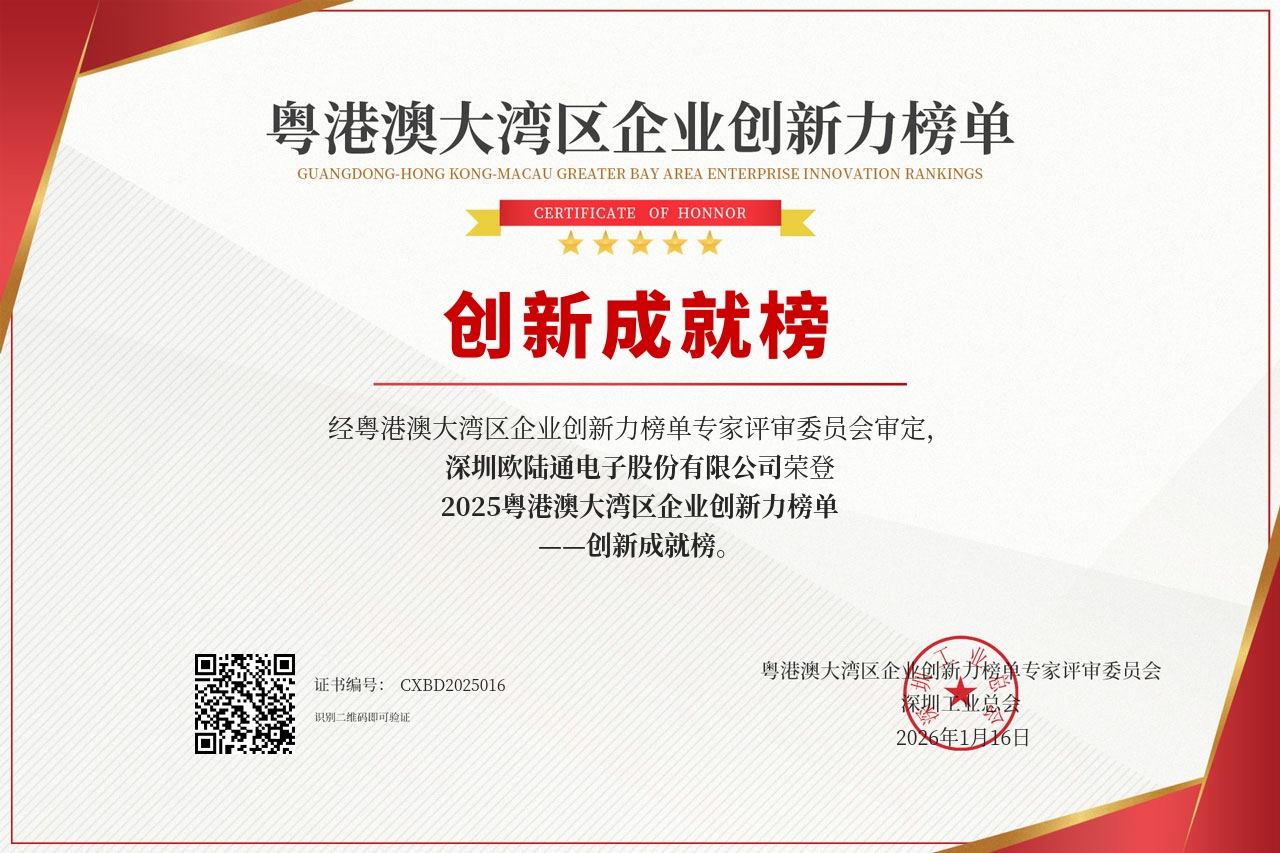 憑借著卓越的自主創(chuàng)新能力和顯著的市場(chǎng)表現(xiàn),歐陸通已連續(xù)六年蟬聯(lián)“粵港澳大灣區(qū)企業(yè)創(chuàng)新力榜單——?jiǎng)?chuàng)新成就榜”,公司副董事長王越天先生再度入選“粵港澳大灣區(qū)企業(yè)創(chuàng)新力榜單——?jiǎng)?chuàng)新杰出人物榜”。