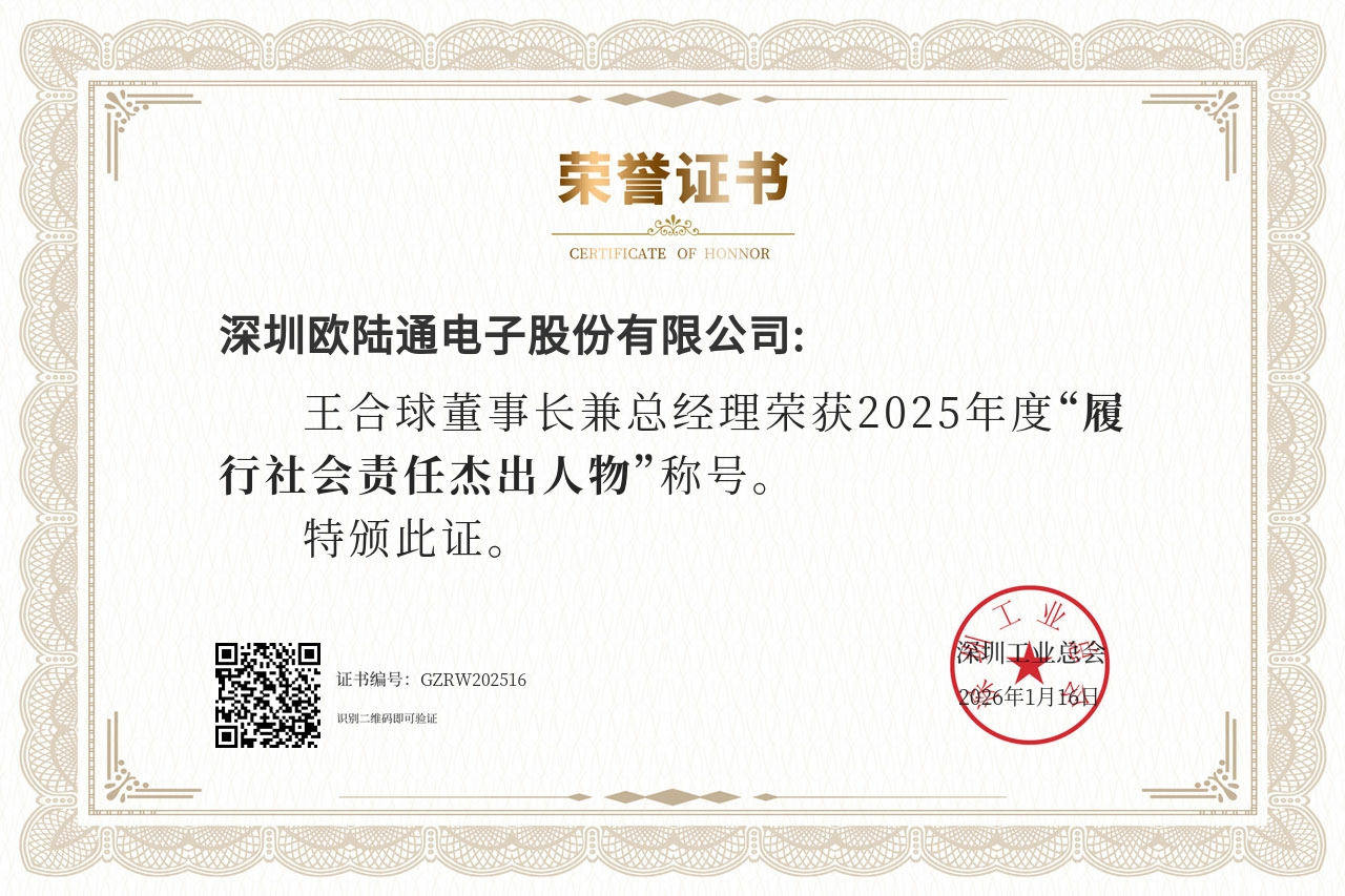 憑借在技術(shù)創(chuàng)新、區(qū)域產(chǎn)業(yè)引領(lǐng)、社會(huì)責(zé)任踐行等維度的綜合表現(xiàn),歐陸通一舉斬獲九項(xiàng)大獎(jiǎng)。歐陸通入選“2025粵港澳大灣區(qū)企業(yè)創(chuàng)新力榜單-創(chuàng)新成就榜”,榮獲“深圳工匠培育示范單位”、“2025年度履行社會(huì)責(zé)任杰出企業(yè)”、“第二十四屆深圳企業(yè)創(chuàng)新紀(jì)錄-自主創(chuàng)新標(biāo)桿企業(yè)”獎(jiǎng)以及兩項(xiàng)“第二十四屆深圳企業(yè)創(chuàng)新(中國)紀(jì)錄”;歐陸通董事長兼總經(jīng)理王合球先生,榮獲“2025年度履行社會(huì)責(zé)任杰出人物”;歐陸通副董事長王越天先生,入選“2025粵港澳大灣區(qū)企業(yè)創(chuàng)新力榜單-創(chuàng)新杰出人物榜”,榮獲“第二十四屆深圳企業(yè)創(chuàng)新紀(jì)錄-創(chuàng)新突出貢獻(xiàn)人物”。